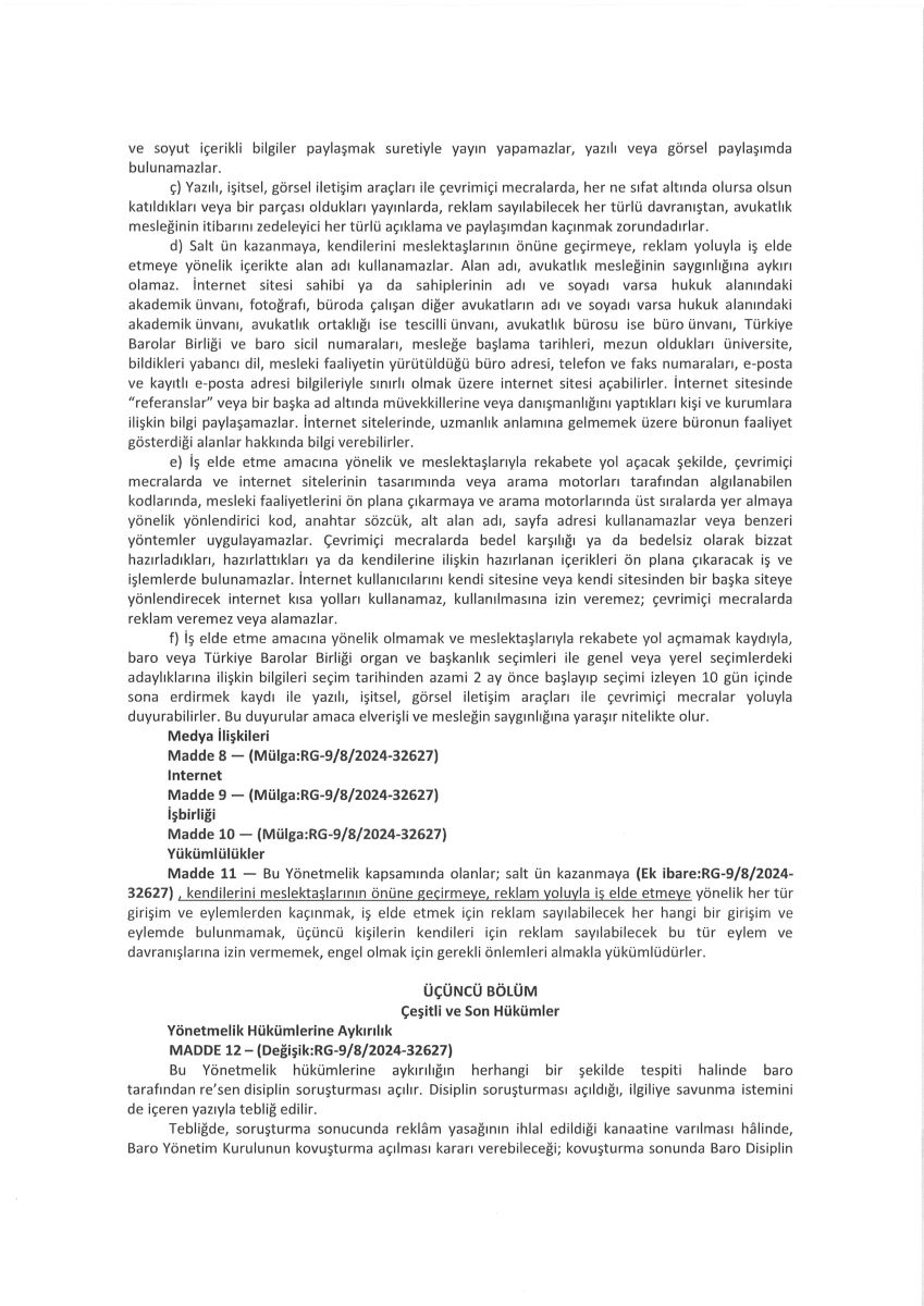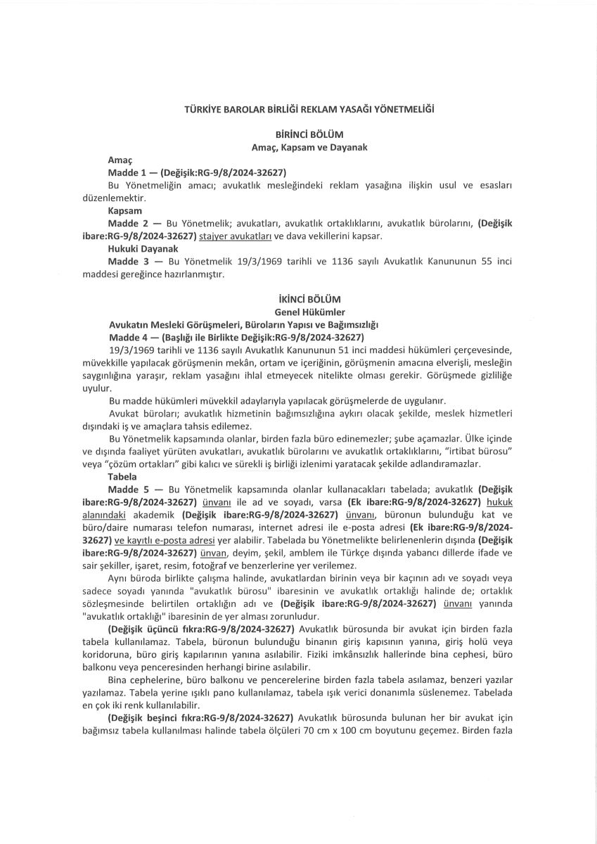 • TÜRKİYE BAROLAR BİRLİĞİ REKLAM YASAĞI YÖNETMELİĞİ HK.