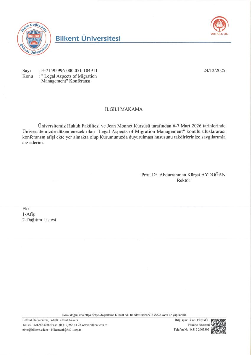 • ''LEGAL ASPECTS OF MİGRATİON MANAGEMENT'' KONFERANSI
