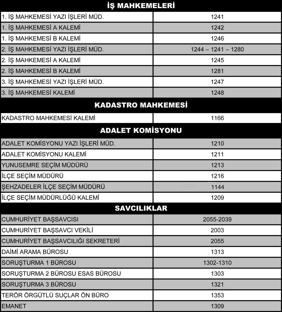 Manisa Adliyesi Dahili Telefon Rehberi