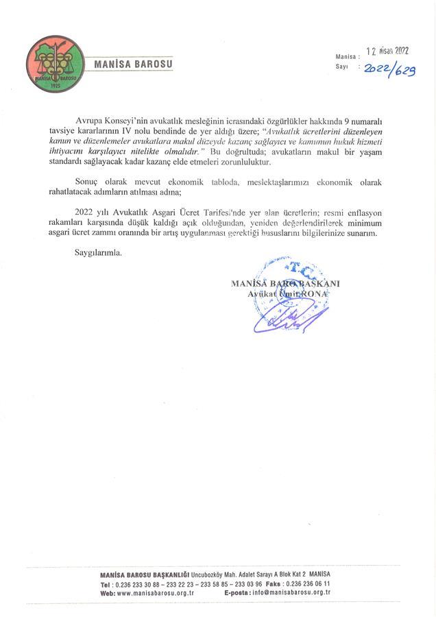 Baromuzun 05.02.2026 ve 12.02.2026 tarihli yazıları ile; Manisa Defterdarlığı nezdinde 2026 yılı Ocak ayı itibarıyla uygulamanın değiştiği yönündeki 04.02.2026 tarihli Manisa Arabuluculuk Bürosunun yazı ve meslektaşlarımızca yapılan bildirimler üzerine, bağlı çalışan arabulucuların ücret talebi ve ödeme sürecinde işveren avukatın serbest meslek makbuzunu kullanıp kullanamayacakları hususunda T.C. Adalet Bakanlığı Hukuk İşleri Genel Müdürlüğü’nden görüş talep edilmiştir.