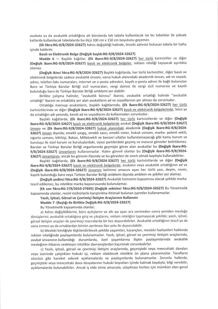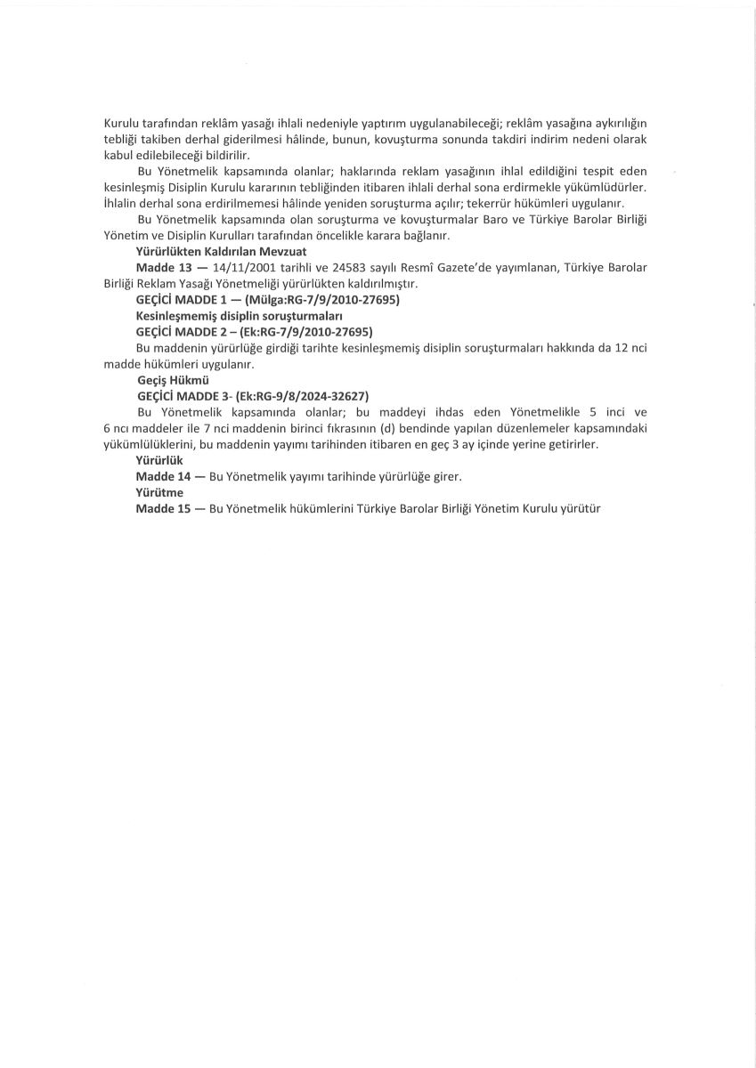 • TÜRKİYE BAROLAR BİRLİĞİ REKLAM YASAĞI YÖNETMELİĞİ HK.