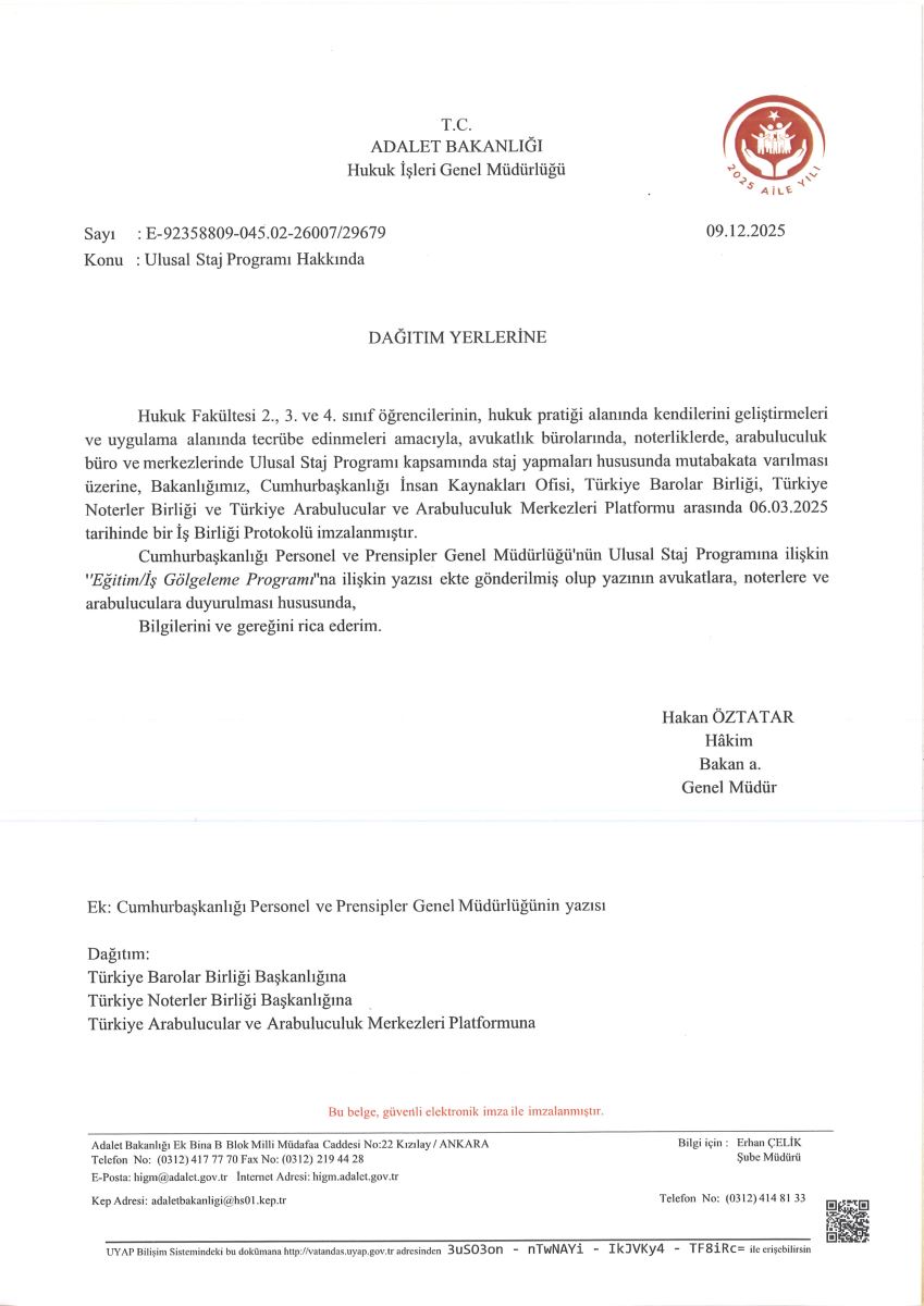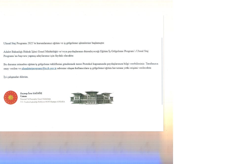 ULUSAL STAJ PROGRAMI HAKKINDA DUYURU NO:2025/70