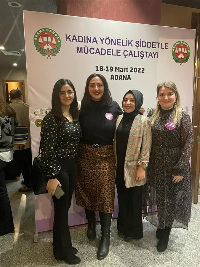 Adana Barosu’ nun ev sahipliğinde 18-19 Mart 2022 tarihinde düzenlenen Kadına Yönelik Şiddetle Mücadele Çalıştayı’ na Manisa Barosu Kadın ve Çocuk Hakları Komisyonu Yürütme Kurulu Üyemiz Av. Zehra OYİT, Manisa Barosu Kadın ve Çocuk Hakları Komisyonu Üyelerimiz Av. Beril ARAS, Av. Hicran Nur ÖZESEN ve Av. Ebru KARA katılmışlardır.